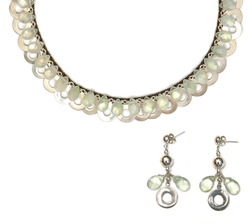 The necklace comes with sterling silver lobster clasp, the earrings on a sterling silver stud/pole.