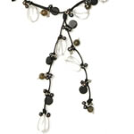 Cotton necklace and matching earrings, with tumbled semi precious gemstones, pearls, sterling silver, swarovski crystals and other crystals.
