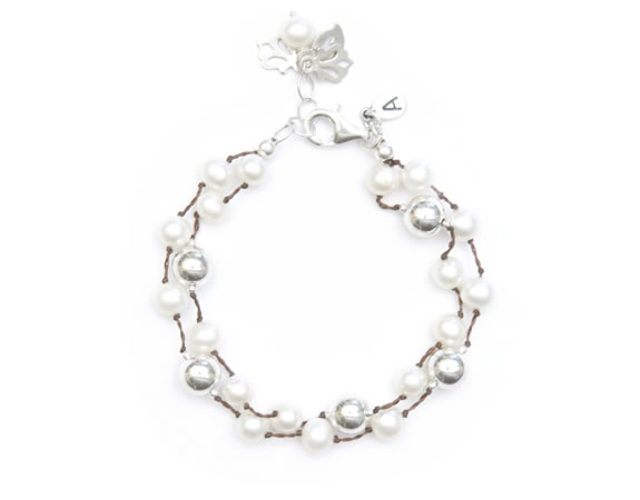 A Delicate design of contrasting knotted pearls with Italian sterling silver beads; two strands with a sterling silver lobster clasp and extension links
